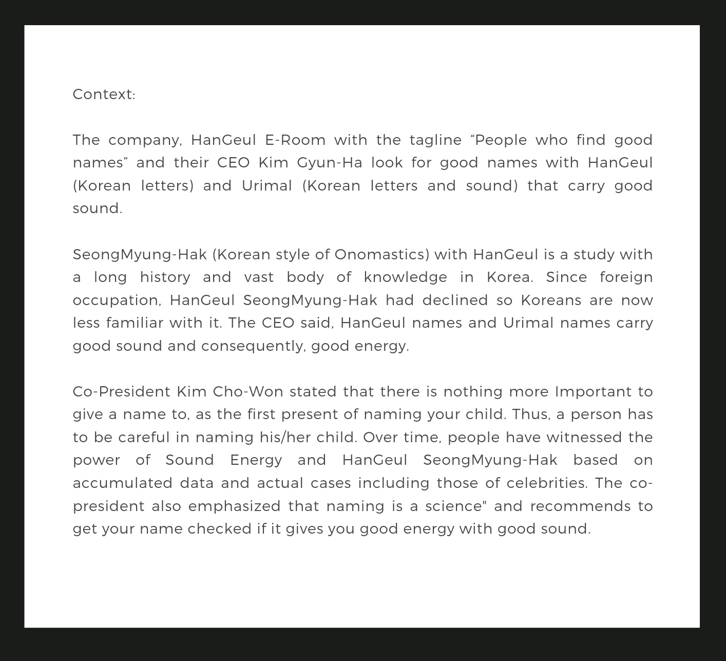 This represents perhaps the most complete picture of the most common names in the united states. Is there any one who need any help about korean related? Should the name reflect what the business sells, or is it better. Many korean grandmothers provide child care for their grandchildren, a responsibility they take seriously. I'm korean who like instructable and a lot of projects.